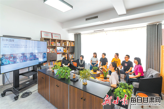 敦煌研究院新媒体团队在探讨打磨新媒体产品。敦煌研究院供图