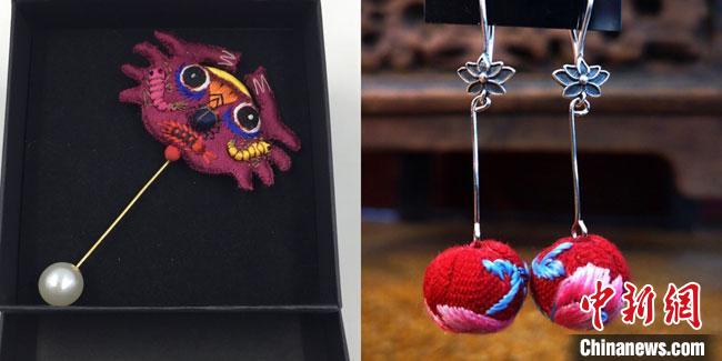 图为刘兰芳不断改良创新,做出年轻人喜欢的香包胸针、香包耳环。(资料图)