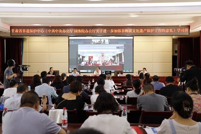 为了保护好、传承好、利用好非物质文化遗产,做好、做大、做强甘肃非遗保护事业,9月2日,由甘肃省非物质文化遗产保护中心主办的《中共中央办公厅 国务院办公厅关于进一步加强非物质文化遗产保护工作的意见》学习班在兰州举办。甘肃省文旅厅党组成员、副厅长吕兴来出席学习班并讲话,甘肃省非遗保护中心负责同志主持学习班。