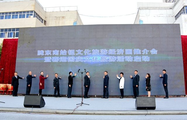 紧随9月24日盛大启幕的“一会一节”高光时刻和即将来临的“十一”黄金周关键节点,9月28日,由甘肃省文化和旅游厅支持指导,天水市委宣传部、天水市文化和旅游局牵头主办的陇东南始祖文化旅游经济圈推介活动暨喜迎国庆文化旅游活动在天水市龙城广场举行启动仪式。甘肃省文旅厅二级巡视员王春生,天水市委常委、宣传部部长马军出席启动仪式并讲话,天水市政府副市长汪小娟主持启动仪式,天水市人大常委会副主任李焕珍、市政协副主席屈光平出席。定西、平凉、庆阳、陇南等陇东南五市文旅部门、文旅企业代表和天水市文化旅游产业发展领导小组成员单位、天水五县两区政府等有关负责人参加。