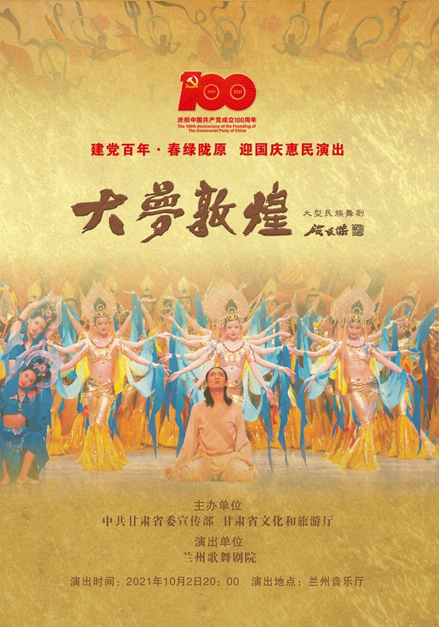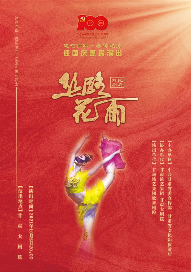 舞台文艺演出多点开花。由省委宣传部和省文化旅游厅联合主办的“建党百年·春绿陇原”——迎国庆惠民演出将分别于10月2日、10月6日,在兰州音乐厅和甘肃大剧院演出经典舞剧《大梦敦煌》《丝路花雨》。《丝路花雨》和《大梦敦煌》是以丝路文化为底蕴,以敦煌壁画为背景的大型民族舞剧,也是甘肃和中国的两大文化名片。《丝路花雨》自1979年创作演出以来,至今已42年,演出达3720场,先后出访40多个国家和地区,观众达500多万人次;《大梦敦煌》自2000年4月首演以来,至今已有21年,在全国31个省、区、市和特别行政区及海外20余个国家,累计演出1800余场,成为新世纪中国舞剧“多演出、多产出”的成功范例,两部经典舞剧作品将为兰州市民、游客献上节日文化盛宴。由省委宣传部、省文化和旅游厅主办,甘肃演艺集团承办的“省直文艺院团中秋国庆节日演出”已拉开帷幕,并将持续至10月下旬,40场精品演出,涵盖歌舞、戏曲、曲艺、民乐、话剧五大艺术门类,将在黄河剧院、东风剧院、人民剧院等舞台依次为观众精彩呈现。9月29日晚,甘肃省“追寻红色足迹,逐梦砥砺前行”红色经典诵读(中南部赛区)比赛在迭部县举行,来自兰州、甘南、陇南、临夏、省直相关单位及个人报送的16个参赛作品近百名红色经典诵读者们,用饱含深情的红色经典诗歌,追忆往昔峥嵘岁月,抒发爱党爱国的炽热情怀。同时,全省各市州文艺院团也组织了内容丰富、极富地方文化旅游特色的200余场文艺展演活动,将深入基层一线、深入景区,为群众、游客送去节日的问候。