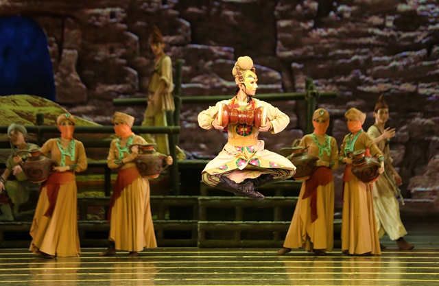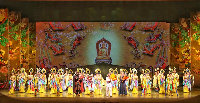 由兰州歌舞剧院创排的舞剧《大梦敦煌》,以敦煌艺术宝库的千百年创造历史为背景,以青年画师莫高与大将军之女月牙的感情历程为线索,演绎了一段可歌可泣的爱情故事。该剧自首演至今,已获得中宣部“五个一工程奖”、中国舞蹈“荷花奖”、中国“文华奖”等多个奖项,入选文化和旅游部庆祝中国共产党成立100周年舞台艺术精品创作工程“百年百部”传统精品复排计划,多次受邀在20多个国家进行巡演,盛况空前,成为中国原创舞剧的经典之作。本场演出中,“月牙”、“莫高”两位主人公再次用扣人心弦的双人舞,将缠绵唯美的爱情故事和敦煌绚丽的奇景完美交融,营造出梦幻般的情致和浪漫。