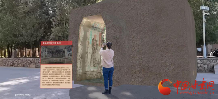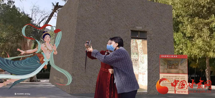 据了解,“飞天”专题游一方面是基于“数字敦煌”的海量数字资源,结合华为河图的厘米级空间定位、虚实融合的技术,在莫高窟创造了一个虚拟孪生世界,实现了窟内文物窟外看的又一次新的尝试;另一方面是基于敦煌学研究的丰硕成果,实现了敦煌壁画中飞天艺术的广泛传播。这是敦煌研究院在科技与文化融合发展中的又一次创新,也是敦煌石窟当代文化价值传播途径和展示方式的最新探索。(敦煌研究院供图)
