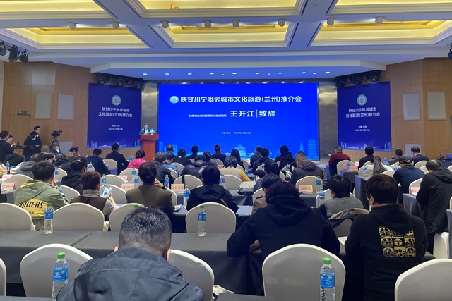 推介会上,宝鸡、汉中、渭南、平凉、绵阳、广元、巴中、南充、吴忠、固原等12个地市向现场来宾和场外观众展示推介了当地富集的文旅资源。陕甘川宁毗邻城市文旅部门、陕甘川宁经联会办事处、兰州市城关区旅游发展行业协会、兰州市旅行社及新闻媒体等120余人参加了推介会。(文/甘肃省文化和旅游厅 肖含亮)