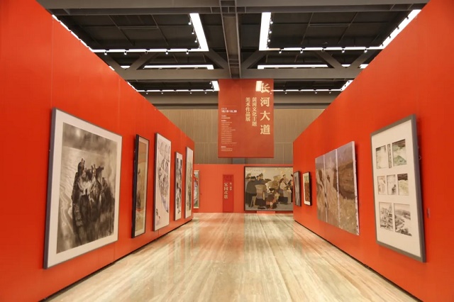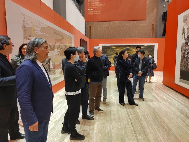 金秋的北京,天高云淡,硕果飘香。10月15日,在习近平总书记主持召开文艺工作座谈会并发表重要讲话七周年和中央印发《黄河流域生态保护和高质量发展规划纲要》之际,由文化和旅游部主办,文化和旅游部艺术司、中国艺术研究院、中国国家画院及黄河流域9省区文化和旅游厅承办的“长河大道——黄河文化主题美术作品展”,在北京中国国家画院开幕。文化和旅游部艺术司副司长何亚文,中央美术学院院长、中国美术家协会主席范迪安,全国政协常委、中国美术馆馆长吴为山,陕西省文旅厅党组书记、厅长高阳,甘肃省文旅厅二级巡视员孟兆辉等沿黄九省区文化和旅游厅和中国美术家协会、中国艺术研究院、中国国家博物馆等相关单位负责同志出席开幕式。开幕式由中国国家画院院长卢禹舜主持。