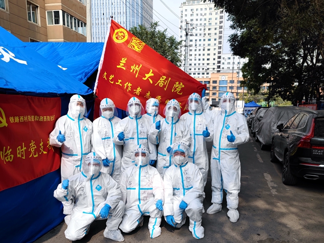 接到通知后,全省各级文艺院团、各有关文化单位纷纷行动起来,奏响了战“疫”大合唱。10月19日上午,甘肃省歌剧院召开疫情防控工作专题会议,决定业务人员实行在家打卡上班,邀请甘肃方舟救援志愿服务队,对办公楼、小剧场、会议室、排练厅、职工食堂、住户楼外围等处,进行全方位防疫消杀,全力保障职工工作、生活区域的安全,确保疫情防控无死角,组织青年志愿者服务队积极参加西北新村社区抗疫志愿服务活动。10月21日,甘肃省陇剧院党总支召开疫情防控工作专题会议,对疫情防控工作进行了专题安排部署,要求全体党员充分发挥党员先锋模范作用,将党史学习教育成果转化为疫情防控的强大动力,在疫情防控工作中当先锋、作表率,成立党员先锋岗和志愿服务队,随时参加社区防疫工作。10月22日上午,甘肃演艺集团召开了会议,要求各单位把责任尽到位,把防疫工作抓好,确保集团范围内不出任何问题,所属各剧场全部关闭,把好外防输入的关口,组织创作“抗疫”文艺作品,积极动员职工为疫情防控做贡献。省文化馆根据省文旅厅对疫情防控工作安排部署,充分发挥群众文化工作者群防群控的宣传动员作用,组织群众文化工作者积极创作,以优秀的文艺作品广泛宣传疫情防护知识,凝聚共克时艰的磅礴力量。