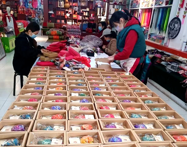 绣娘们连夜赶制防疫香包 郭坚 摄