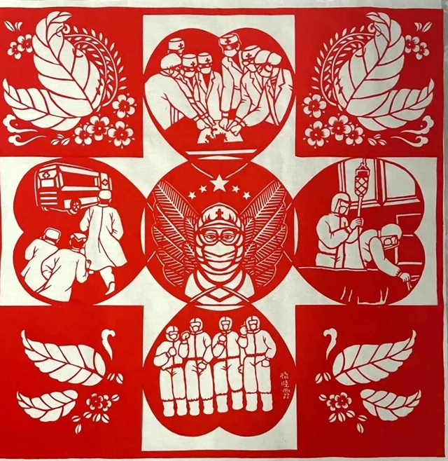 剪纸作品“抗疫天使” 张掖市非遗传承人杨晓霞作 甘肃省文化和旅游厅供图