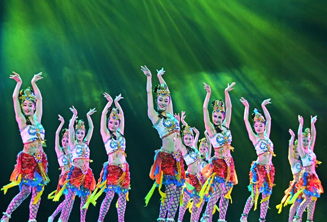 甘肃省歌舞剧院创排的群舞《柘枝舞》,来源于流行于唐代的古丝绸之路西域三大乐舞之一的“健舞”,根据唐代诗人章孝标《柘枝》诗文启发创作而成。群舞《柘枝舞》在复原诗歌描述的基础上,依据莫高窟第359窟南壁舞伎、第201窟北壁舞伎、第320窟南壁舞伎、第112窟北壁“报恩经变”《叉手舞》等壁画的素材,开拓出《柘枝舞》新的舞蹈语汇和风格。舞蹈动作明快,旋转迅速,刚健婀娜兼而有之,快速复杂的踏舞,使佩带的金铃发出清脆的响声。同时,注重眉目传情,眼睛富于表情,既有中原江南地区轻歌曼舞的柔美,又有北方西域一带马背民族狂放豪迈的刚健,生动再现了“柘枝初出鼓声招,花钿罗衫耸细腰”唯美意境。该作品彰显了“一带一路”东西方文明的交流与融合,以及敦煌文化的博大精深、兼容并蓄,展现了中华民族的文化精神、文化胸怀和文化自信。(文/甘肃省文化和旅游厅 孙来军)
