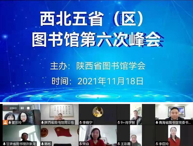 2021年11月18日下午,“西北五省(区)图书馆第六次峰会”在线召开。会议主题为“共商、共建、共享——全力推动西北五省(区)图书馆事业高质量发展”,来自陕西、甘肃、宁夏、青海、新疆五省(区)主要公共、高校、科研机构图书馆的馆长、学会理事长、秘书长等40余人参加了会议。甘肃省图书馆馆长肖学智、兰州大学图书馆馆长田中禾、中科院西北研究院文献情报中心主任吴新年等作为甘肃代表参会。