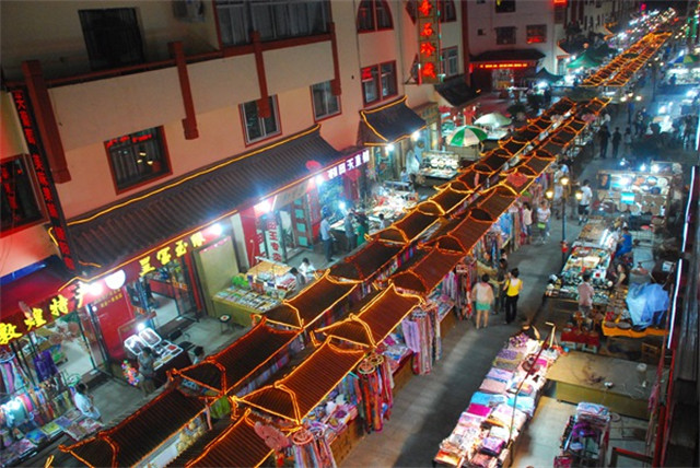 敦煌夜市特色商业街整体建筑风格为仿唐建筑并兼有浓郁的地方特色,是丝路美食、非遗手工、特色文创、地方特产等的聚集地,因具有鲜明的地方特色和浓郁的民俗风情,被誉为敦煌“夜景图”和“风情画”。(文/人民网 黄帆)