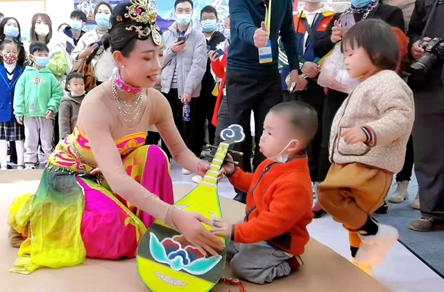 千年敦煌,醉美甘肃。在会展中心,在长江两岸,在黄鹤楼前,人们总会被翩翩起舞的飞天舞姿所吸引,观众争相与演员合影打卡,憨态可爱的小朋友也在指导下学起了敦煌舞,这种自带光环的吸引力,深刻诠释着甘肃文旅资源的无穷魅力。