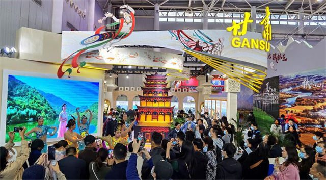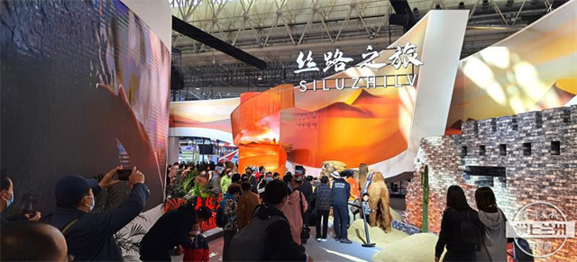 “交响丝路·如意甘肃”主题展馆汇集了丝路文化、长城文化、长征文化、黄河文化、始祖文化等多元特色,巧妙地将“如意甘肃”特有的地形地貌和丰厚的文旅资源,通过展馆特装搭建、文化旅游图片墙展览及文化旅游产品展示的方式成功出圈,成为文化元素涵盖面最广、旅游资源覆盖面最全的主题展馆之一。