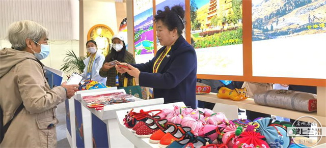 标志着自古以来武威敬老精神的彩绘鸠鸟胸针、陇南两当香甜可口的狼牙蜜、平凉崆峒山下采来艾草制成的香囊、五彩缤纷的绣花鞋垫……来自甘肃各地的文创产品,在本次博览会均表现亮眼。敦煌博物馆带来的面膜、眼影盘、粉底等美妆产品,颇受年轻女性的青睐。曾到敦煌游览过的武汉市民李女士表示,敦煌的文创产品别具一格,将传统文化和化妆品融合在一起,令人耳目一新。