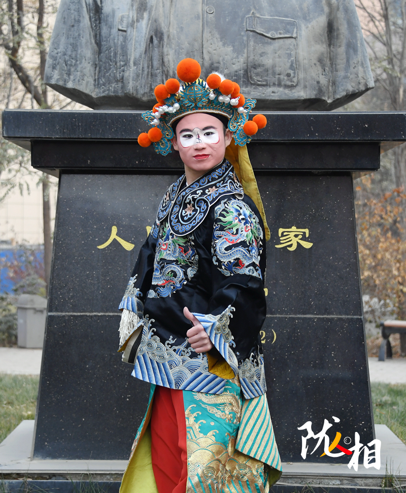 由戏曲专业的学生扮演的丑角“搬不倒”