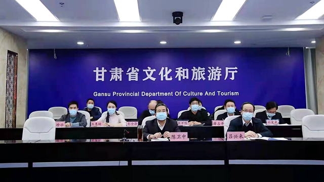河北、山西、甘肃等八省区设分会场,甘肃省文化和旅游厅党组书记、厅长陈卫中,厅党组成员、副厅长吕兴来在甘肃分会场参加了此次视频会议。