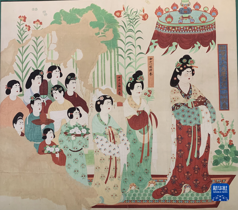 《都督夫人礼佛图》复制品(段文杰临摹)。新华社记者 张玉洁 摄