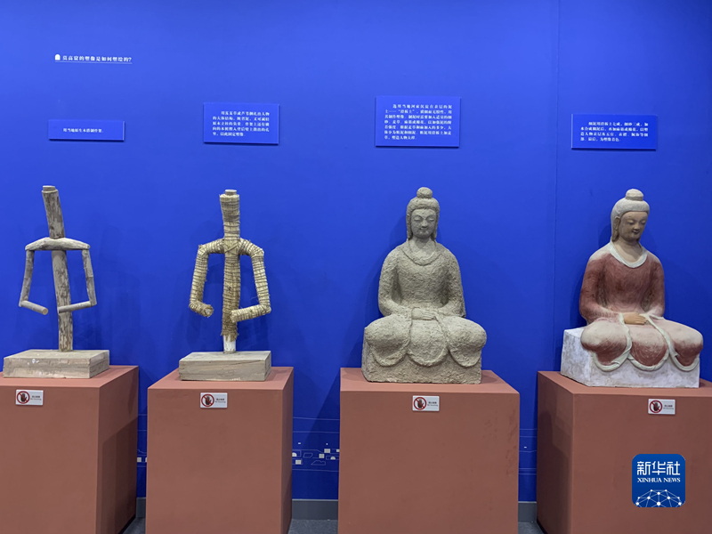 这是敦煌石窟艺术展展示的彩塑制作步骤。新华社记者 张玉洁 摄