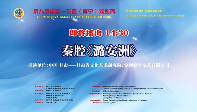 12月29日,由甘肃省文化艺术研究院策划,与定西铁堂演艺有限公司联合出品的秦腔甘肃派濒危失传剧目《潞安州》精彩亮相第九届中国—东盟(南宁)戏剧周。