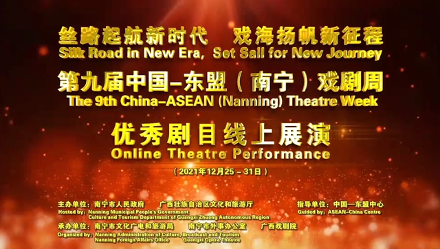 第九届中国—东盟(南宁)戏剧周由南宁市人民政府、广西壮族自治区文化和旅游厅主办,中国—东盟中心指导,南宁市文化广电和旅游局、南宁市外事办公室、广西戏剧院承办,南宁市民族文化艺术研究院执行。戏剧周包括中国—东盟(南宁)戏剧周开幕式、中国—东盟优秀剧目线上展演、“金色殿堂”中国—东盟优秀艺术家线上个人艺术专场、中国—东盟艺术线上展览、中国—东盟(南宁)线上粤剧大赛五大板块。来自泰国、老挝等5个东盟国家,中国广西、浙江、云南、内蒙古、甘肃、河南等19个省份的37个艺术团体参加演出共32场,涵盖了老挝木偶戏、越南水上木偶剧,中国秦腔、京剧、婺剧、越剧等38个国内外剧种。