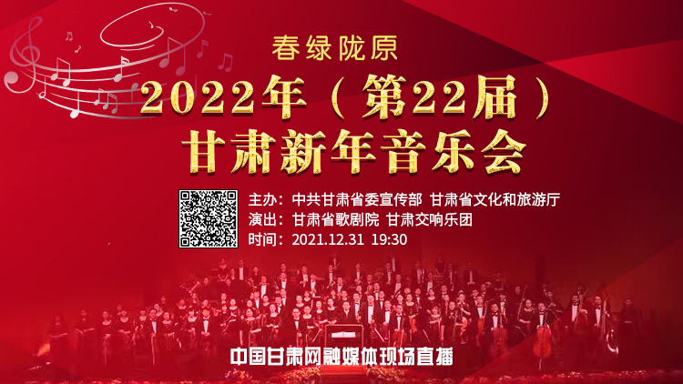 中国甘肃网12月31日讯(本网记者 任磊)12月31日19时30分,由中共甘肃省委宣传部、甘肃省文化和旅游厅主办的“冬奥过大年·春绿玉门关”百日千场文化活动暨“春绿陇原”文艺展演——2022年甘肃新年音乐会将正式拉开演出大幕。
