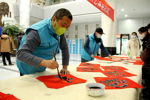1月25日,正值北方小年。小年也是“忙年”的开始,为迎合春节贴年红的传统习俗,甘肃省图书馆还现场书写楹联,将带有美好祝愿的春联送到读者手中。一幅幅红艳艳地带着墨香的春联与“福”字铺陈在桌面上,充满着节日的气息。