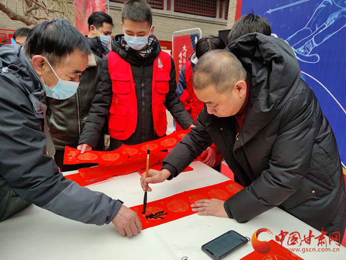 中国甘肃网1月26日讯 (本网记者 张兰琴)金牛辞旧岁,福虎迎新春。为丰富兰州市民春节期间的精神文化生活,营造喜庆、祥和的节日氛围,同时结合甘肃省文化和旅游厅“冬奥过大年 春绿玉门关”百日千场冬奥活动主题,今天上午兰州市博物馆举办了“我们的节日·春节”系列活动之“送书法春联进乡村、进社区迎冬奥主题文化活动”。