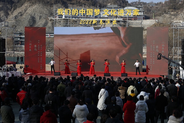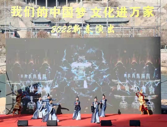 爆竹声中除旧岁,春风送暖入屠苏。浓浓的年味洋溢在和谐金城的街头,喜庆的笑容挂满了陇原儿女的脸庞,2月2日大年初二,黄河岸边的近水广场更是载歌载舞,人声鼎沸,呈现出一派祥和喜庆的气氛。由甘肃演艺集团歌舞剧院倾情呈现的“我们的中国梦”——文化进万家迎新春文艺演出在这里热闹开启,本次活动由中共甘肃省委宣传部、甘肃省文化和旅游厅主办,甘肃演艺集团、兰州市委宣传部承办,甘肃新媒体集团、兰州黄河风情线大景区管委会协办。文艺演出由”新甘肃”客户端进行全程同步直播,当日点击量30多万人次。