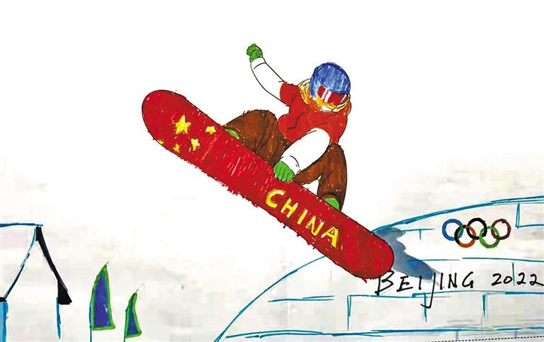 伴随着北京冬奥会的举行,冰雪运动受到包括青少年群体在内的越来越多人的关注和喜爱,除了去滑雪场滑雪,到溜冰场滑冰,不少青少年朋友还将这种喜爱转化为以冬奥会为主题的热情创作——可爱的冰墩墩、精美的奖牌、精彩的滑雪场景……或跃然纸上,成为一幅童趣盎然的绘画;或动手制作,成为一件灵动可爱的手工作品。