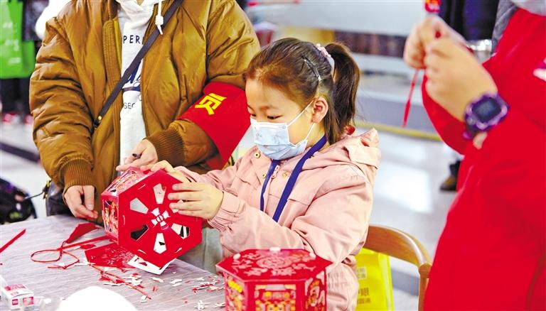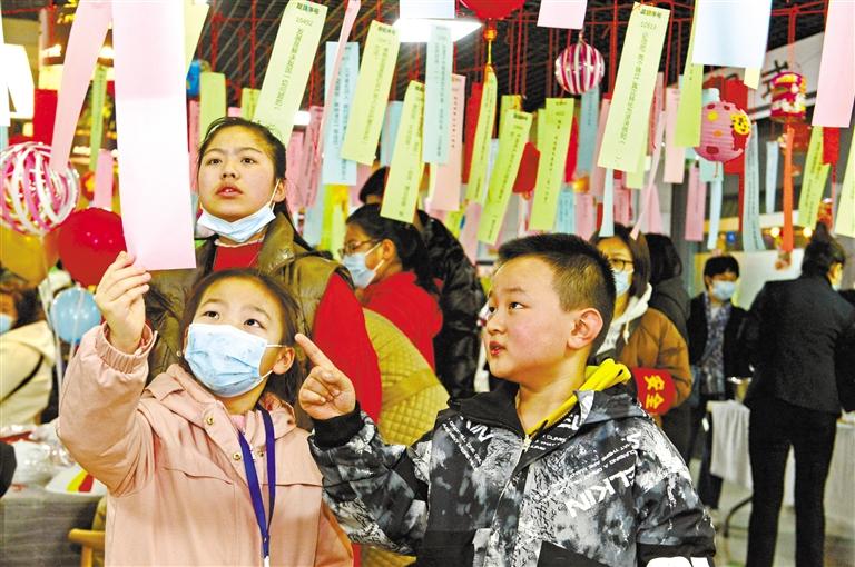 2月15日元宵节,兰州市七里河图书大厦内张灯结彩,一场丰富多彩的元宵节有奖竞猜活动举行,猜灯谜、制作小灯笼,吸引了众多的孩子。 奔流新闻·兰州晨报记者 裴强 摄