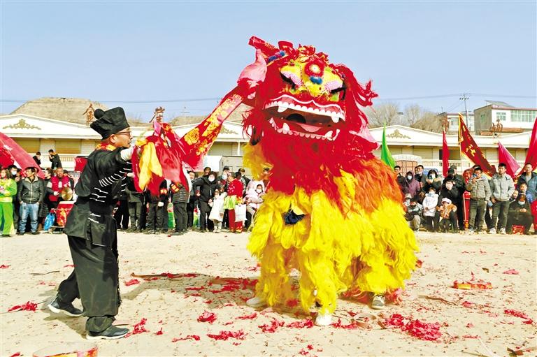 2月15日元宵节,欢快喜庆的社火、歌舞表演在榆中县金崖镇邴家湾村举行。 奔流新闻·兰州晨报记者 张艾萍 通讯员 张永琰 周恩德 摄