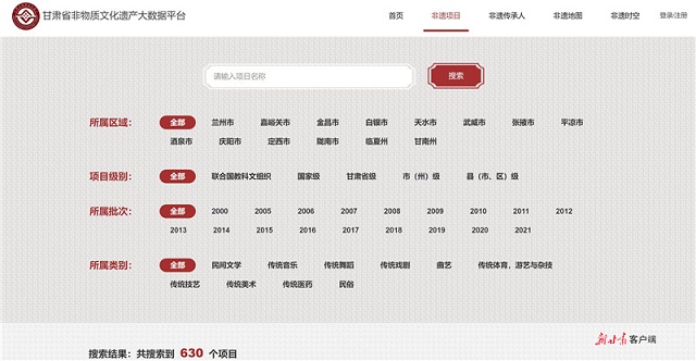 该平台上,只要用户登陆“甘肃非遗”门户网站(gansuich.cn)、微信小程序“陇原非遗”以及“一部手机游甘肃”App,输入关键词检索,即可获取知识图谱、传承人信息的文字、图片、音视频等非遗项目相关内容和信息。今后,随着平台建设的不断完善,全省各级10个门类的非遗代表性项目以及非遗传承人相关资料,将分期分批全部上云。(文/新甘肃·甘肃日报记者 施秀萍)