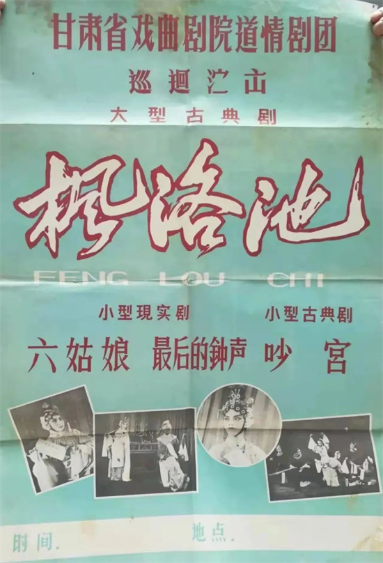 1962年,上级部门决定陇剧团下南方巡回演出。这对全体人员来说是大喜事,机会实在难得,喜悦的心情可想而知。同志们坚持晚上演出白天修排。9月下旬乘火车到达巡演第一站在安徽省蚌埠市,每到一地先把在北京演出时和中央首长、艺术大师以及专家们观看《枫洛池》的大幅照片挂起来,观众先看照片和剧团简介再看戏,这种宣传作用很好。第一站演出很成功,对大家鼓励很大。第二站到安徽省省会合肥,在一流的江淮大剧院演出,演出前十分钟剧院播放了58年陇东老道情唱片《六姑娘》等,演出过程中剧场气氛热烈,掌声不断,取得了很好的效果。
