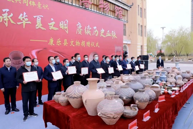 为充分发挥各类文物的研究、展示、科普、教育作用,丰富各族群众精神文化生活,临夏州发出了文物捐赠倡议书,得到了社会各界的积极响应和广泛参与。在此次康乐县的捐赠活动中,民营企业家、老干部、宗教界及社会热心人士共捐赠各类文物藏品1624件,主要包括彩陶、玉器、瓷器、青铜器、古化石、红色文物等,极大地丰富了康乐县博物馆馆藏数量,为广大文物收藏爱好者树立了榜样,为开创康乐县文博事业新局面作出了积极贡献。