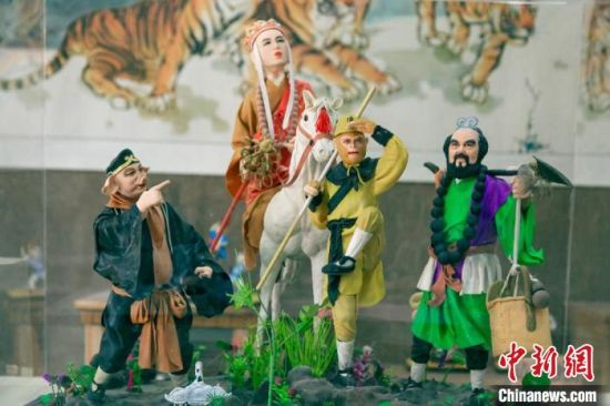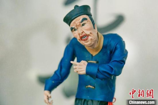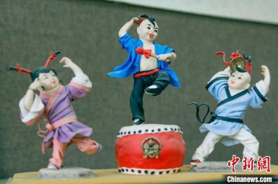 图为面塑人物敲锣打鼓,作品生动逼真。 魏涛 摄