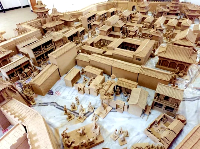 4月22日,甘肃省临夏州非物质文化遗产泥塑技艺传承人常天平作品微缩群雕《凤州古城》创作完成。
