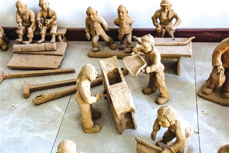 在张延棋的巧手之下,万景万物皆可塑,既有数米大的“马”、“牦牛”,也有数厘米小的人物、农具。还有“上粮”“打马掌”等劳动场景。