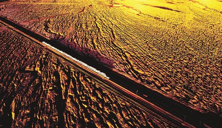 “环西部火车游”穿越敦煌雅丹地貌区。