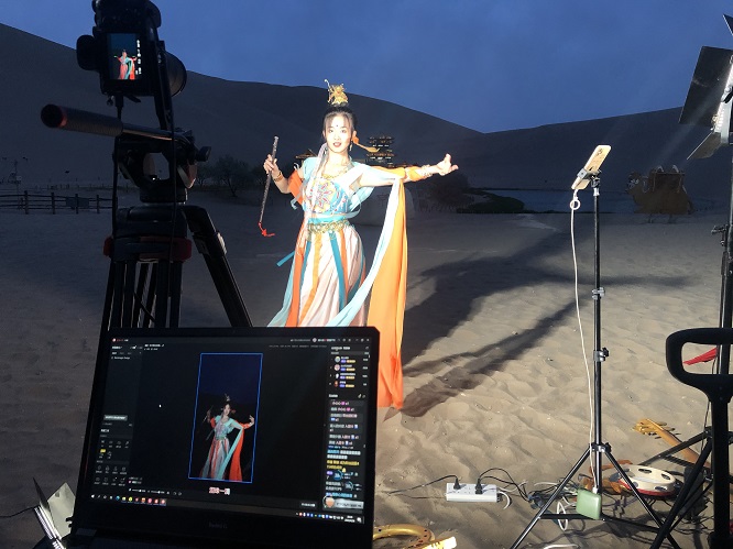 近年来,随着网络直播行业兴起,在直播间带货、PK比人气、聊天交友、讲课授业等各类主播屡见不鲜。在敦煌,很多敦煌舞爱好者把优美的敦煌舞蹈跳在如同画卷中的鸣沙山月牙泉、玉门关、阳关等景区中进行实景直播,其表达形式新颖、画面感与代入感强,引起了广大网友关注和点赞。
