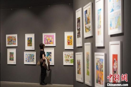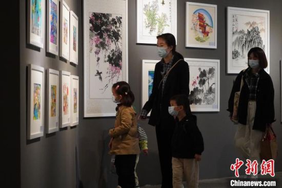 市民参观少儿美术展览。