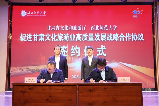 5月12日,甘肃省文化和旅游厅与西北师范大学签署《促进甘肃文化旅游业高质量发展战略合作协议》。甘肃省委宣传部副部长,甘肃省文化和旅游厅党组书记、厅长陈卫中,西北师范大学党委书记张俊宗出席签约仪式。