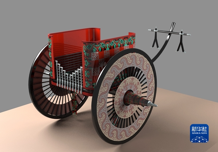 马家塬14号墓地的马车复原图(甘肃省文物考古研究所供图)