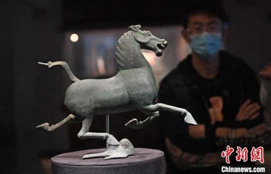 2020年6月,参观者欣赏甘肃省博物馆展出的“铜奔马”真品,其形象矫健俊美,别具风姿。(资料图) 杨艳敏 摄