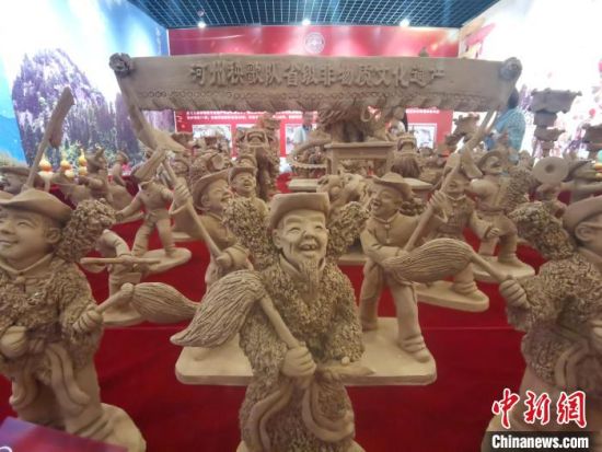 6月8日,2022年“文化和自然遗产日”甘肃省非遗宣传展示主会场系列活动在该省张掖市举行。由甘肃临夏州非遗传承人常天平制作巨幅泥塑群雕,展示了近百位农民闹社火、舞河州秧歌的场景,农民扮演妖婆子、财宝神、船姑娘等,或敲锣打鼓、舞龙舞狮,或手持农具、载歌载舞,表情动作千姿百态,趣味十足,吸引民众驻足,回忆、感悟农耕文化。