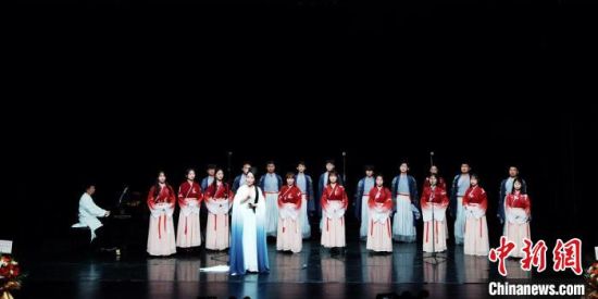中新网兰州6月13日电 (记者 丁思 李亚龙)历经两年筹划编排,由兰州大学艺术学院、兰州大学中华诗乐文化研究中心主办的“琴歌雅韵•秦缘古诗词歌曲专场音乐会”12日晚在甘肃大剧院上演,展示和演出《诗经》、乐府、唐诗、宋词、元曲的部分珍贵古谱,跨越中国2000多年历史,呈现了从江南到边陲敦煌的典型诗乐作品。
