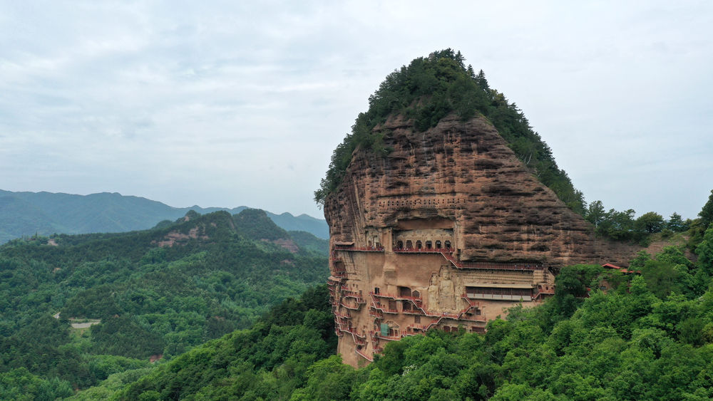 这是6月9日拍摄的麦积山石窟(无人机照片)。新华社记者陈斌摄