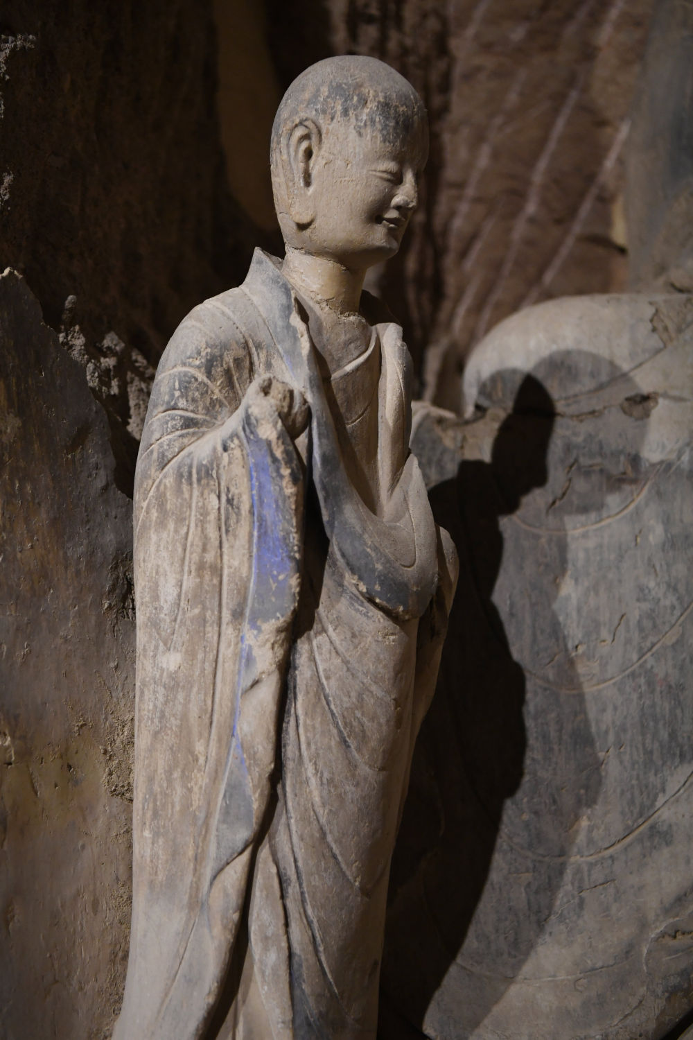 这是有着“东方微笑”之称的麦积山石窟第133窟第9号龛内的小沙弥造像(6月9日摄)。新华社记者陈斌摄