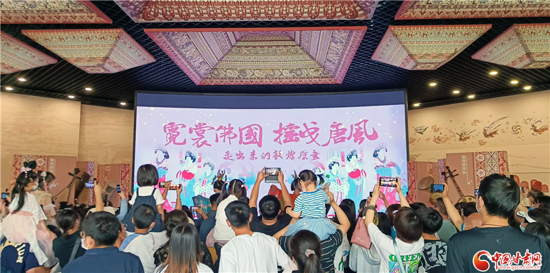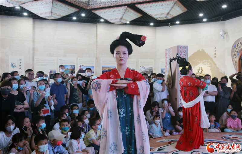 中国甘肃网6月11日讯(本网记者 程健 宋芳科)6月11日上午,值文化和自然遗产日到来之际,敦煌文化研究院在兰州分院敦煌艺术馆举办了“时代共进、人民共享”主题展,通过虚实融合敦煌石窟体验、敦煌服饰展演、文创产品展示等,向广大市民群众全方位呈现了深厚的敦煌文化与莫高窟文化遗产。当天的活动,中国甘肃网全程进行了网络直播。