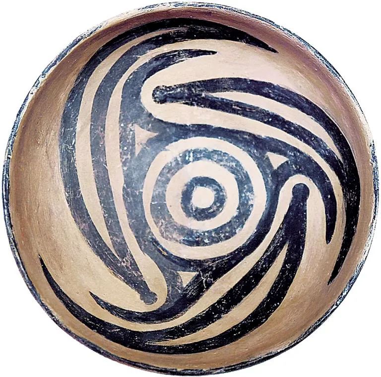 马家窑文化石岭下类型同心圆变体鸟纹彩陶钵