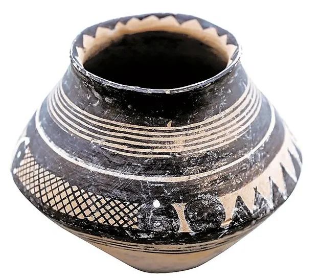 马家窑文化半山类型锯齿漩涡纹彩陶罐